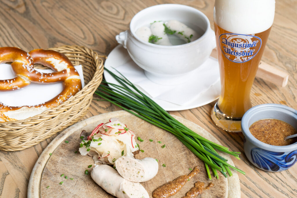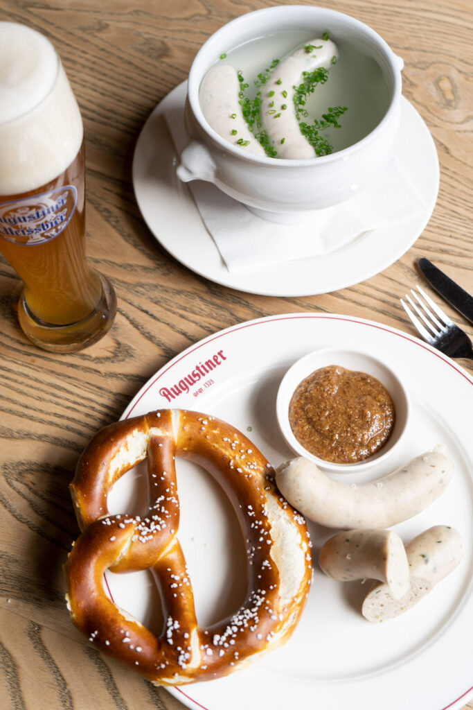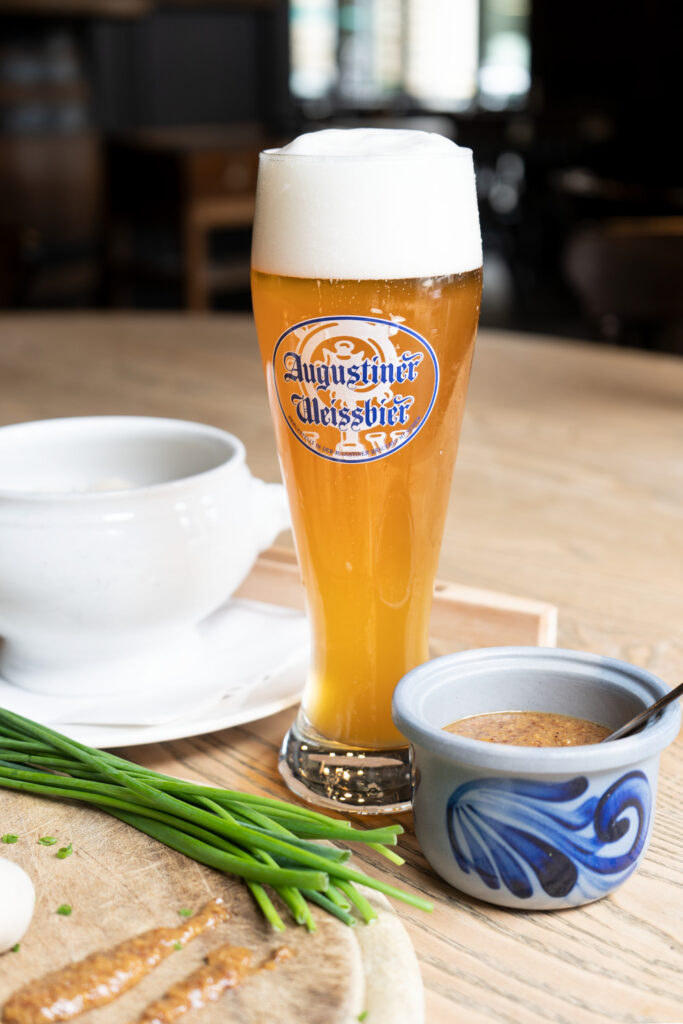 klassisch serviert, dazu frisches Augustiner Bauernbrot und Butter