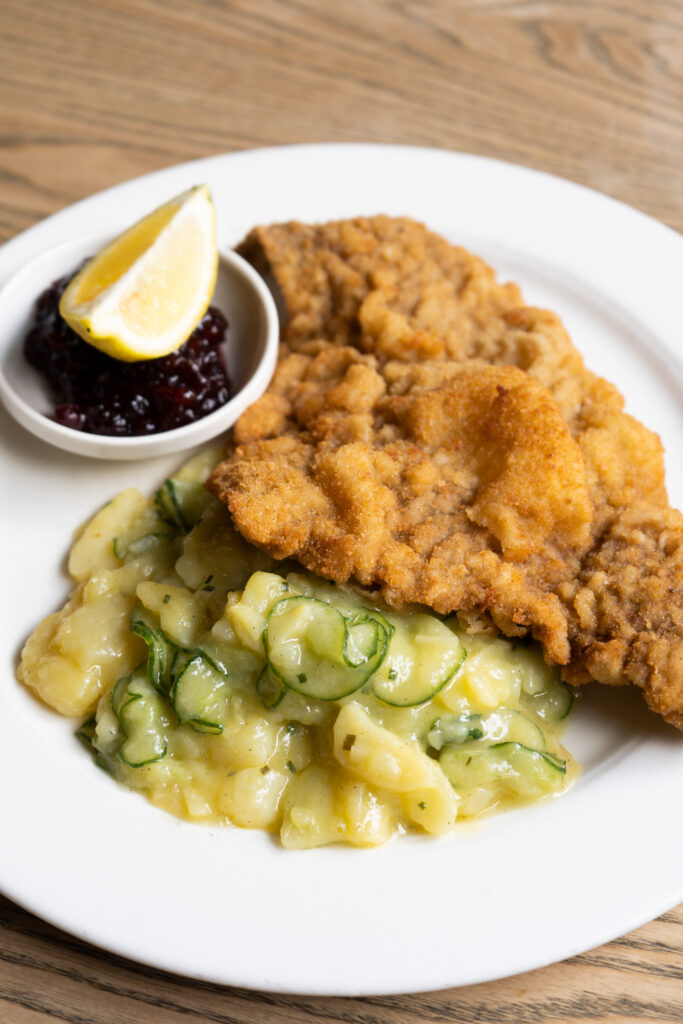 mit knusprig lockerer Panade, an lauwarmem Kartoffel-Gurken-Salat 1,6