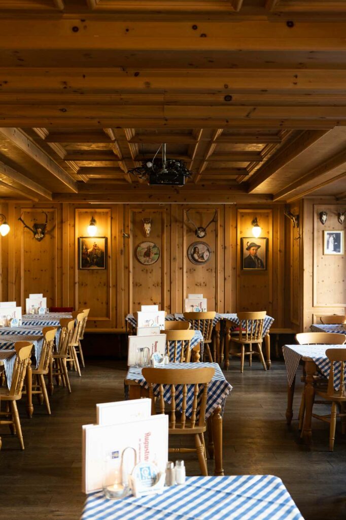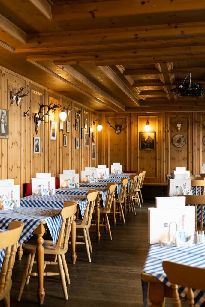 Unsere Hochzeitsstube wird regulär nicht oder nur mit blau-weiß karierten Tischdecken eingedeckt. Menü-Besteck sowie Wasser- und Weingläser und Menagen gehören ebenfalls dazu.